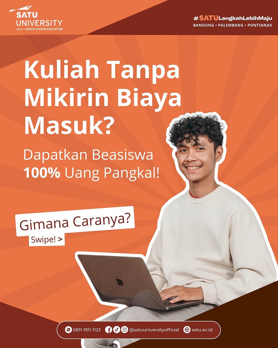 Selain itu, sebagai bagian dari komitmen kami kepada masyarakat, SATU UNIVERSITY akan memberikan 200 beasiswa untuk memberikan akses pendidikan yang lebih luas kepada masyarakat. Karena kami percaya bahwa setiap individu berpotensi besar untuk berkontribusi positif terhadap pembangunan negara ini.