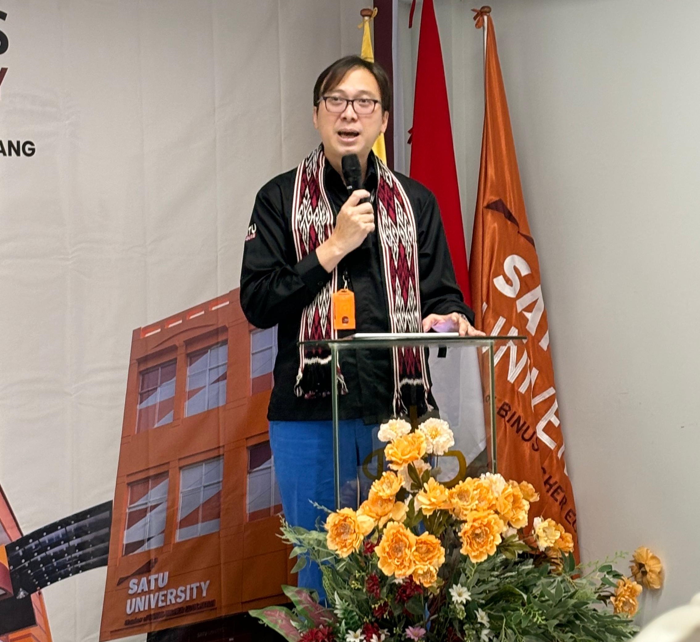 Selamat datang di SATU UNIVERSITY, perguruan tinggi yang menawarkan pendidikan berkualitas dan terjangkau bagi masyarakat luas. Satu’ memiliki makna filosofis bersatu dalam satu-kesatuan. Visi kami mengedukasi setiap insan pelajar di seluruh penjuru Nusantara melalui keunggulan akademik (academic excellence), mendorong keterampilan kerja dan kewirausahaan (employability and entrepreneurship), membina dan memberdayakan insan pelajar (fostering and empowering), berorientasi pada inovasi (innovation) dan menjadi institusi pendidikan pilihan (university of choice). Kehadiran SATU UNIVERSITY akan berkontribusi memenuhi kebutuhan sumber daya manusia berkualitas untuk menunjang pertumbuhan ekonomi Indonesia, khususnya dalam memajukan industri kecil/menengah dan UMKM. Kami siap untuk membantu memulihkan pendidikan daerah dengan menerapkan sistem akademik holistik dan memfasilitasi setiap potensi pelajar. Salam, Stephen Wahyudi Santoso, BSE, MSIST, CBDMP. Chief Operating Officer BINA NUSANTARA