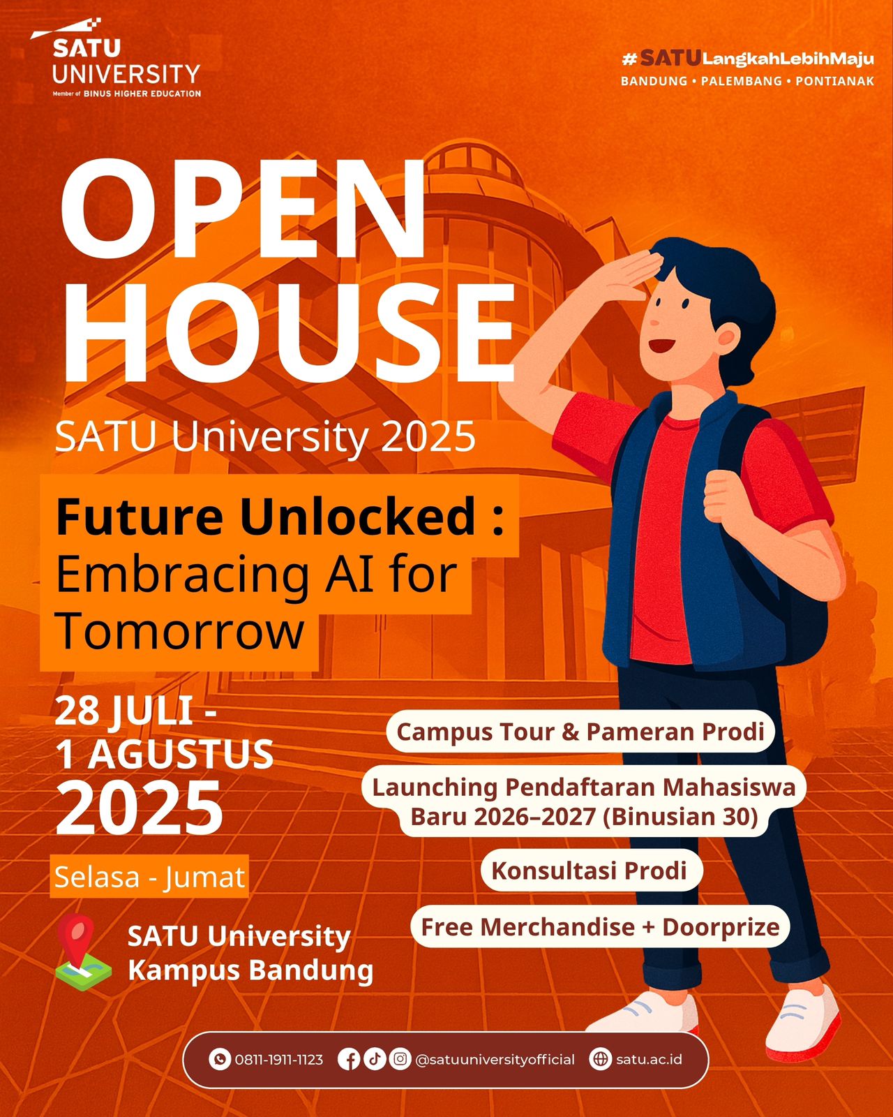 Kami juga ingin menekankan bahwa teknologi memainkan peran yang sangat penting dalam pendidikan saat ini. SATU UNIVERSITY, sebagai bagian dari BINUS Higher Education, akan mengedepankan teknologi dalam perjalanan belajar mahasiswa. SATU Connect sebagai Learning Management System kami, akan memberikan dukungan dan layanan akademik yang efisien bagi mahasiswa, memastikan bahwa mereka dapat mengakses materi pembelajaran dengan mudah dan efektif.